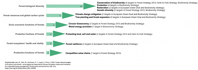 Lier, M., Köhl, M., Korhonen, K. T., Linser, S.; Prins, K. 2021. Forest relevant targets in EU policy instruments - can progress be measured by the pan-European criteria and indicators for sustainable forest management? Forest policy and economics 128: 13 p.