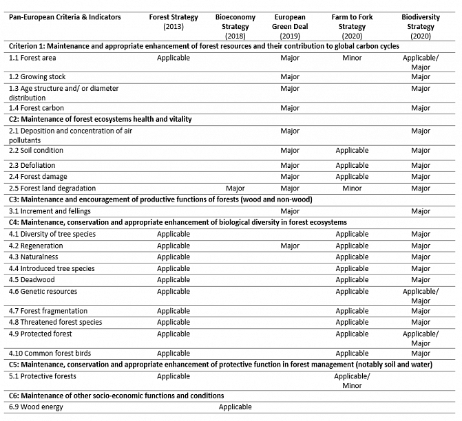 Forest relevant targets in EU policy instruments – what are they and can their progress be measured using the pan-European Criteria and Indicator for Sustainable Forest Management (SFM)?