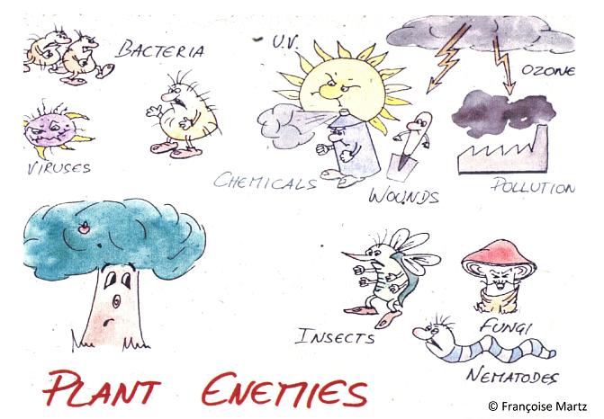 Plants are sessile and have many enemies. They have developed a large set of mechanisms to defend themselves against pathogen attacks using a combination of constitutive (pre-existing organs or chemicals, e.g. resin in conifers) and induced defences (e.g. de novo production of antimicrobial compounds).