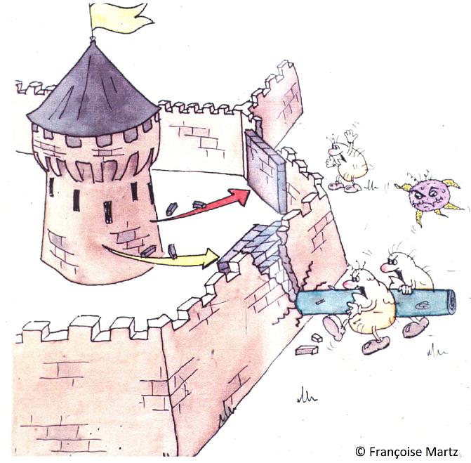 If the plant cell is depicted as a fortified castle, the ramparts are the cell walls and the nucleus the keep. So let’s see how the plant cell starts fighting the pathogen…