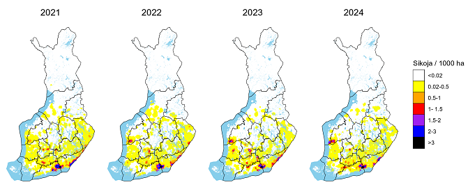 Villisika on tulokaslaji, jolla on vakiintunut, lisääntyvä kanta Suomessa. Luonnonvarakeskus seuraa villisikakannan kokoa, kehitystä ja levittäytymistä. Tältä sivulta löydät kanta-arviot ja tutkimustietoa villisiasta.
